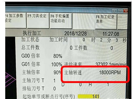 鉆通孔時--轉(zhuǎn)速18000轉(zhuǎn),進級8米,